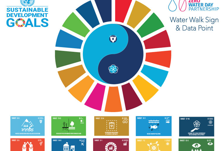 The ZWDP water walk logo takes SDG 6 (Water) and SDG 17 (Partnerships) afor its symbol.